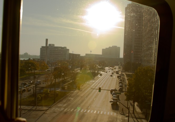 sun through the detroit rail window